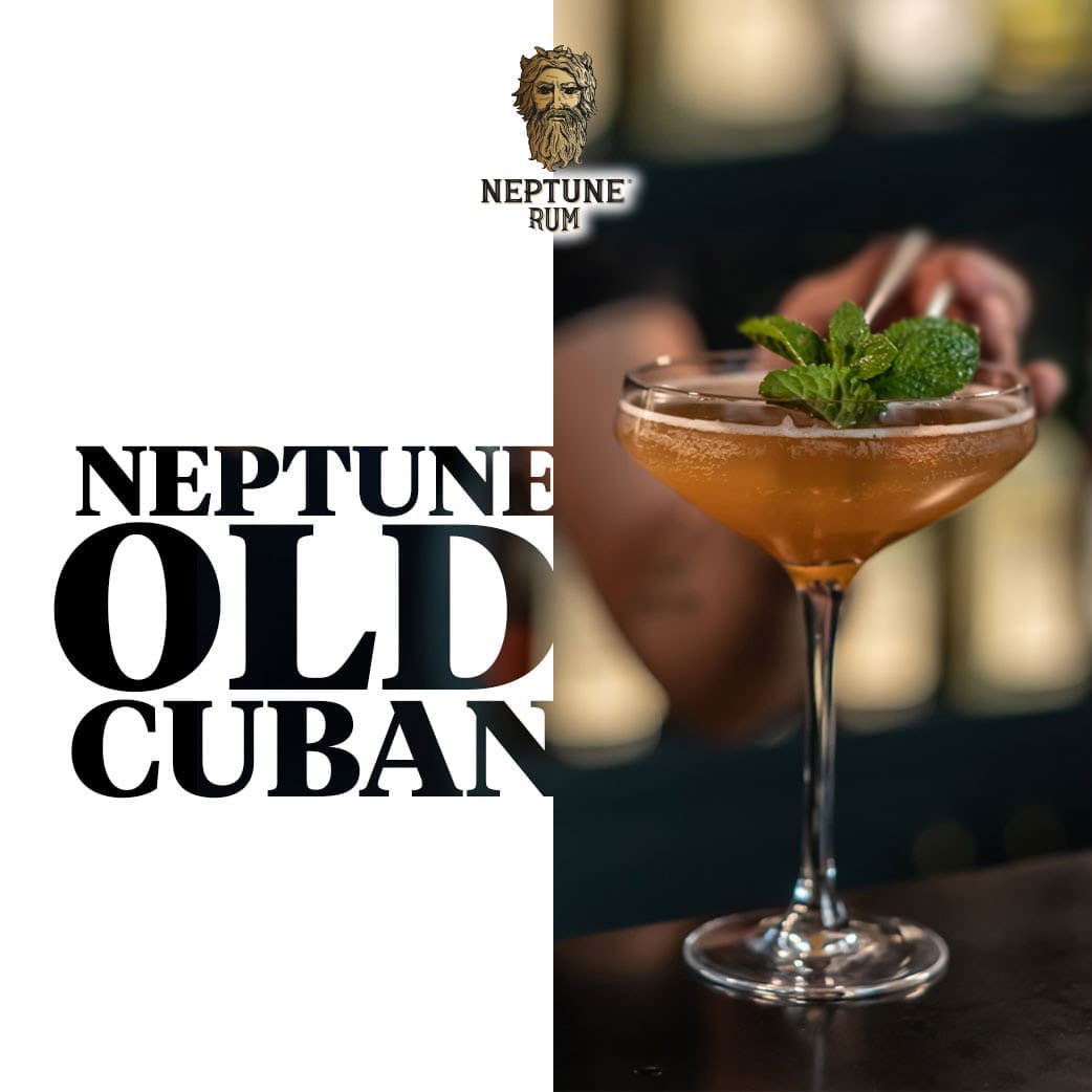 50ml Neptune Rum Barbados Gold25ml Lime Juice20ml Sugar Syrup8 mint leaves2 dashes Angostura BittersTop Up with Bubbles